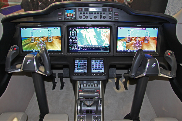 The aircraft is equipped with a Garmin G3000 glass cockpit system (i.e. most of the cockpit readouts are presented on flat-panel displays).
